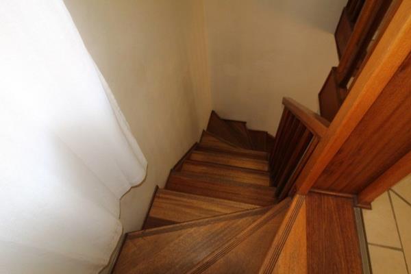 There is also a guest bathroom downstairs, upstairs consist of 2 bedrooms with built-in cupboards as well as a full bathroom. There is a single garage, guest parking, own small garden and excellent security.