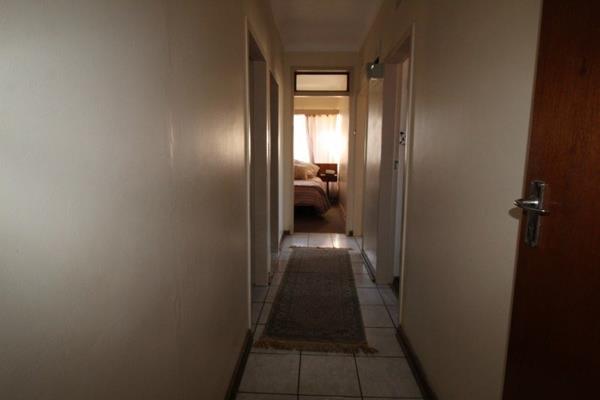 Situated close to businesses and schools. This house boasts 3 bedrooms with built-in cupboards, 2 bathrooms (one is en-suite), spacious kitchen with built-in cupboards, separate scullery and laundry. There is a spacious lounge and pre-paid electricity.