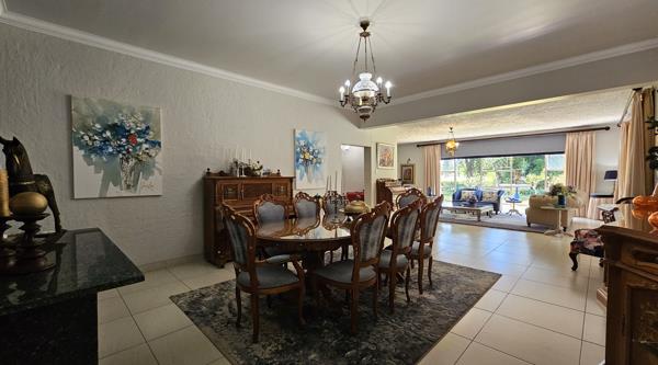 Welcome to this exquisite home that offer comfortable family living in all of its spacious rooms and areas. This beautiful property boasts 5 spacious, north-facing bedrooms, 3 bathrooms (1 en-suite) as well as a large, sunny open plan living space together with a dining room. The modern kitchen together with a pantry and separate scullery is perfect to enjoy and practice your cooking skills. Further, the house also offers a study that can be utilised as another living area or bedroom, as well a laundry/staff room with access from the garage. The main bedroom also boasts a dressing room with space for additional cupboards and all rooms features laminated flooring.