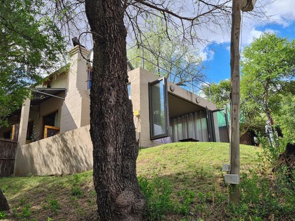 Exclusive Mandate. This tranquil place is situated on the banks of the Vaal River in the heart of the Vredefort Dome and is the perfect place to escape to when you need a getaway out of town. This neat home consists of 3 bedrooms, 1 bathroom, an open plan kitchen/dining/lounge area and a braai room with a built-in braai overlooking the river. Other features include: another open patio with beautiful views out of the main bedroom, 3 air conditioners and low maintenance aluminium doors and window frames. The estate have a communal swimming pool and braai area, lots of open spaces for children to play and features various wildlife species like springbucks, nyalas and impalas, roaming around the houses.