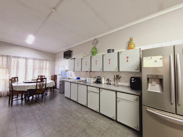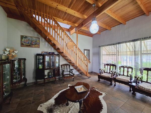 One of the bedrooms is located upstairs and opens onto a private balcony, while the main bedroom features its own en-suite bathroom. The remaining bedrooms are well-sized and share a second full bathroom. A large kitchen with a separate washing-up area makes cooking and daily routines a breeze. The home also includes two generous living rooms, ideal for both relaxation and entertaining. A standout feature is the separate, oversized entertainment room with a built-in braai perfect for hosting gatherings all year round, completely set apart from the main living areas for added privacy and space. Outside, a sparkling swimming pool provides a refreshing escape on warm days. With 10 solar panels installed, this home is both energy-efficient and future-ready, offering a well-rounded lifestyle with everything you need in one beautiful property.