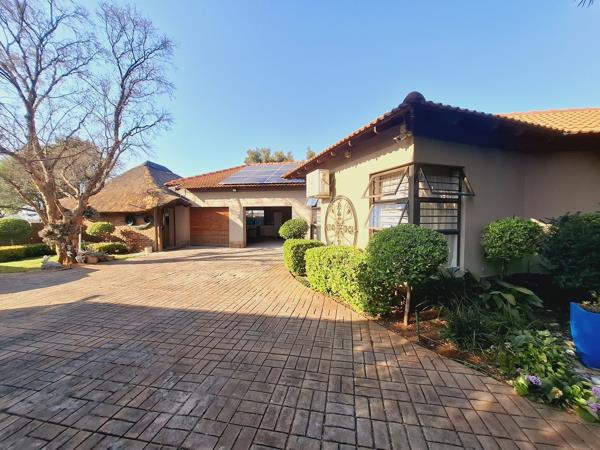 The home features a modern kitchen with a separate scullery, a dining room, and multiple living spaces. A double garage and additional covered parking provide plenty of space for vehicles, while the large lapa with built-in braai and its own bathroom creates the ultimate entertainment area.