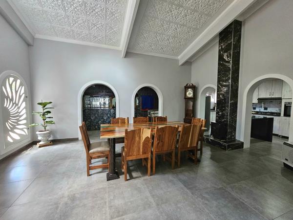 The main house features generous open-plan living spaces filled with natural light, creating an inviting atmosphere for everyday family life. The lounge and dining area flow naturally into a well-equipped kitchen with ample cupboard space, modern finishes, and a breakfast nook ideal for casual meals. Offering five large bedrooms, 2.5 bathrooms. Private study to work from home.