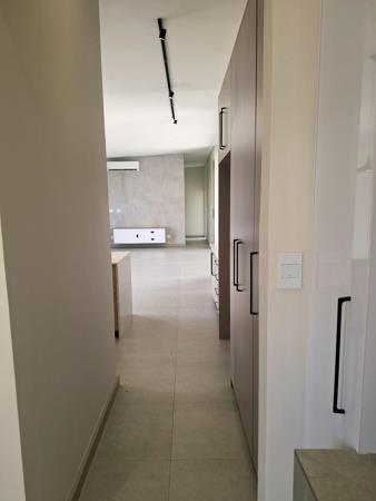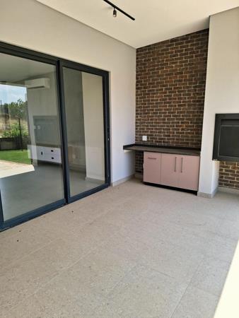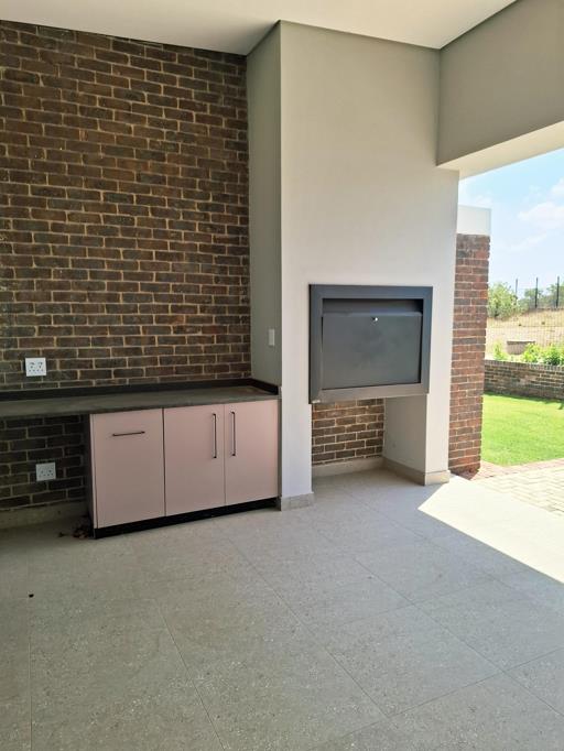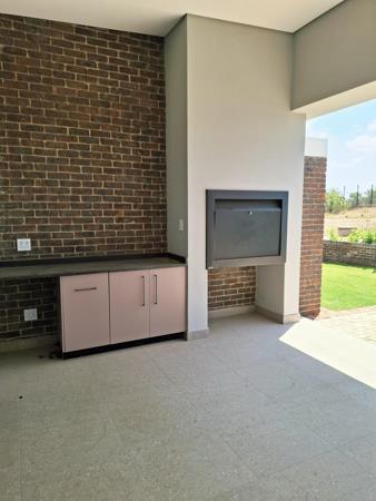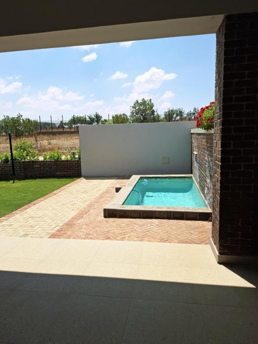 The open-plan living area is fitted with an air-conditioner and opens to a built-in braai and swimming pool, creating the perfect setting for indoor and outdoor entertainment.