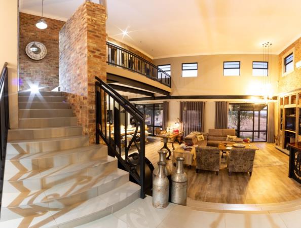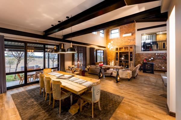 Large windows and stacking doors frame breathtaking Highveld views, while allowing natural light to pour in and wildlife to wander right up to your doorstep. Here, every day feels like a retreat where luxury meets the beauty of the wild.