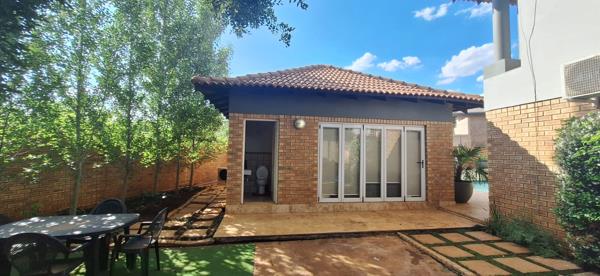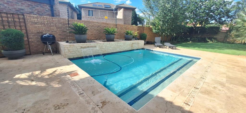 For sale is a beautifully designed 3-bedroom double-storey family home situated in a quiet and secure neighborhood, offering the perfect balance of luxury, comfort, and sustainability. The ground floor features spacious open-plan living areas, including a modern kitchen with granite countertops, ample cupboard space, and a separate scullery, flowing effortlessly into the dining and lounge areas. Large sliding doors open onto a sparkling swimming pool and well-manicured garden ideal for family gatherings and outdoor relaxation. Upstairs, the home boasts three generous bedrooms, each with built-in cupboards, while the main bedroom includes a stylish en-suite bathroom and private balcony with lovely neighborhood views. This property is fully equipped with a comprehensive solar power system, including panels, inverter, and battery backup, providing energy efficiency and protection from load-shedding. Additional features include a double automated garage, top-quality finishes throughout, and excellent security measures for peace of mind. Perfectly located close to schools, shops, and main routes, this home offers everything a modern family could want elegant living in a safe, serene, and eco-friendly environment.