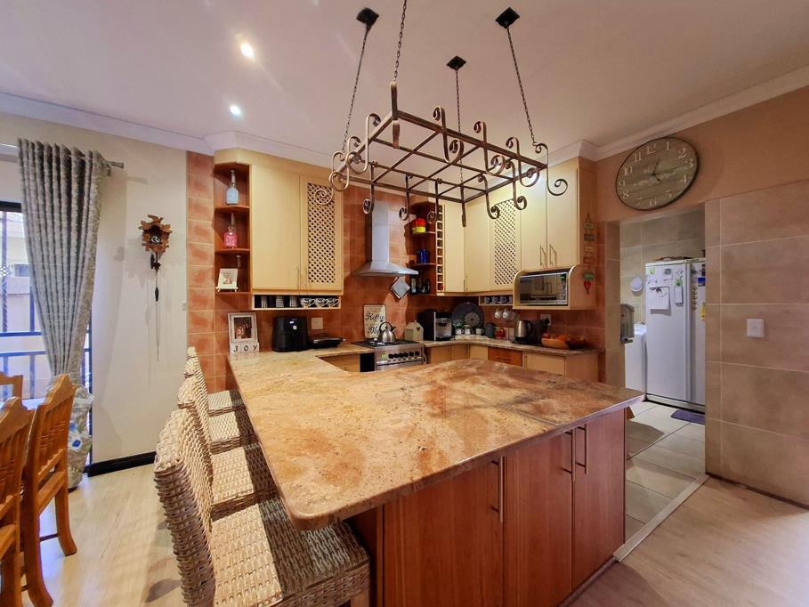 For those who love to entertain, the enclosed braai room offers the ideal space to host guests in any season. The property also includes a double garage and an additional carport, a well-maintained garden with an irrigation system, and a 5kVA inverter for uninterrupted power supply.