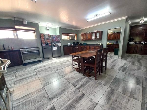 The outdoors feature a lapa, a braai room overlooking the pool, and a well-irrigated garden supported by a strong borehole and four water tanks. With a 4-car garage, 2 carports, laundry, storeroom, and refrigerated chamber, practicality meets endless opportunity here.