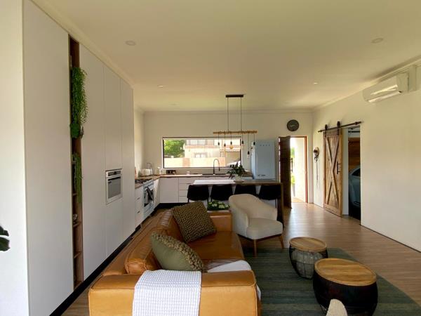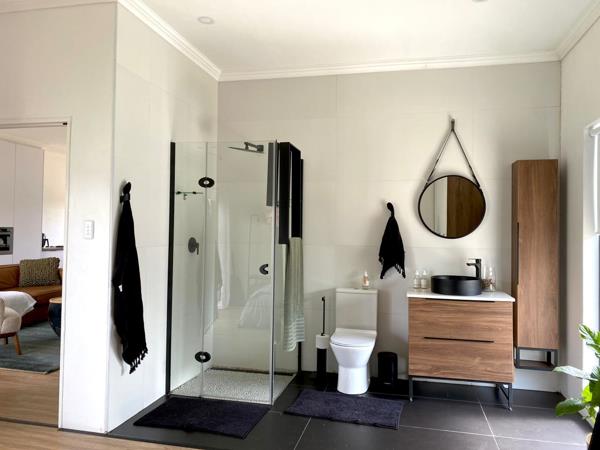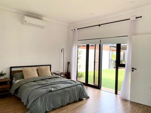 The main bedroom includes a built-in study area, complete with a desk and organized stationery drawers. Plus, a handy doggy door ensures your furry companions can join you effortlessly. Take control of your home''s comfort with a WiFi-enabled breaker that allows you to manage your two geysers directly from your smartphone for ultimate convenience. The garage includes space for laundry appliances, built in storage space, and a door leading to a private courtyard.