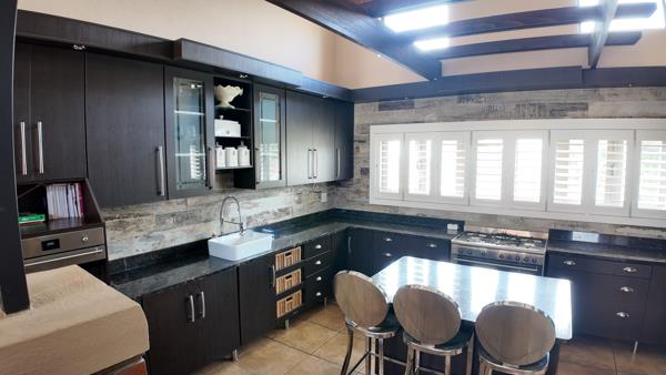 The open plan lounge and dining area provide the ideal space for relaxing. The perfectly designed kitchen is a chef''s dream, featuring a convection oven, fitted refrigerator, gas stove island for quick and easy breakfasts, and a spacious scullery/laundry area complete with a pantry-cupboard