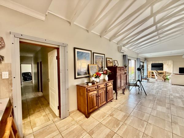 The home is ideal for entertaining with a built in braai and sparkling blue pool set in a well manicured garden.