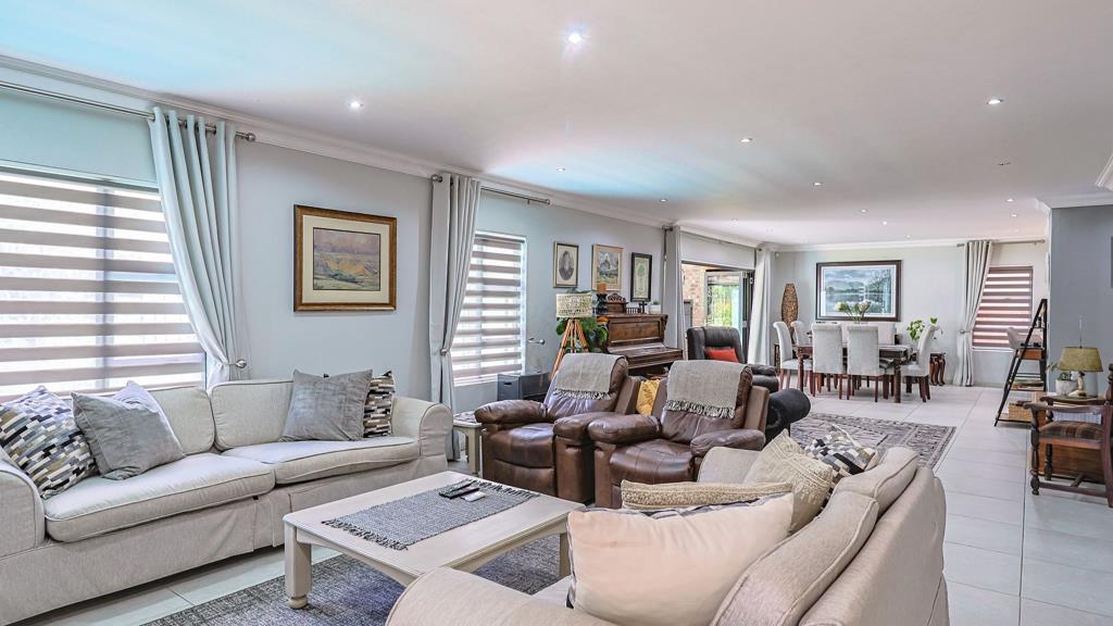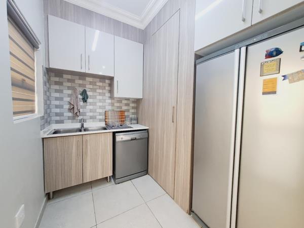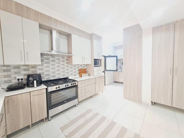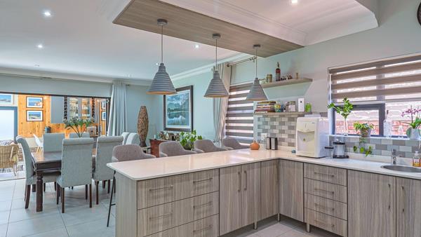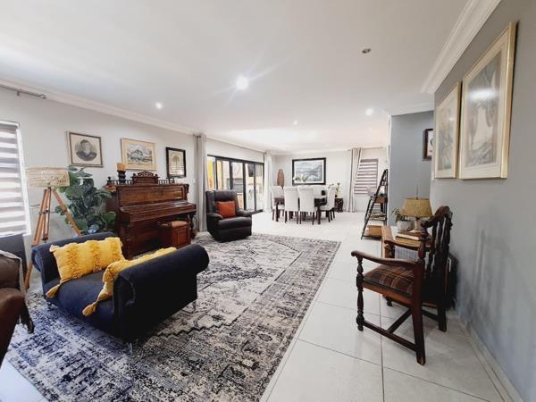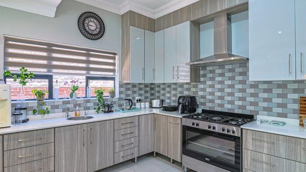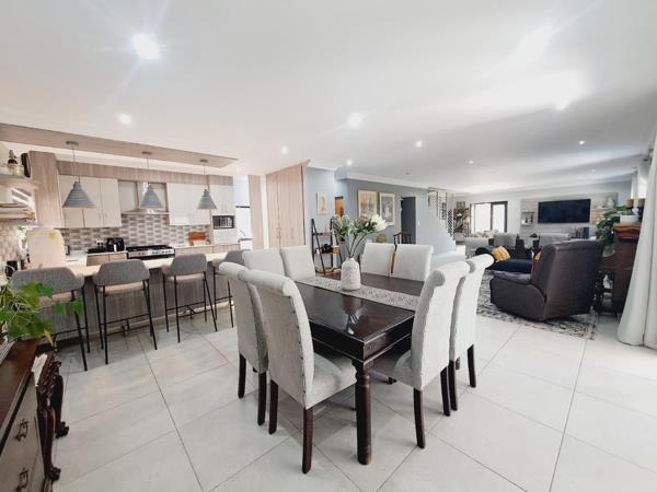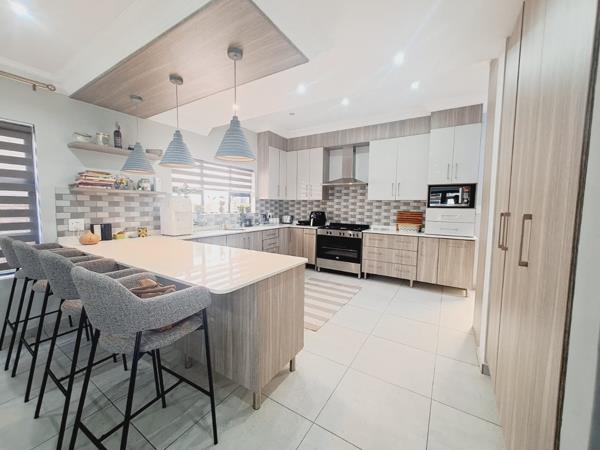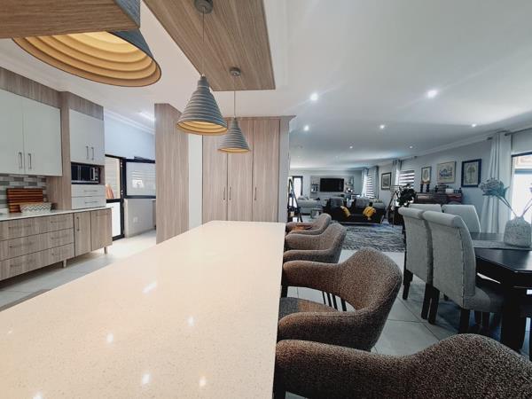 Step inside and experience effortless open-plan living. The lounge, dining area and contemporary kitchen flow beautifully together, enhanced by a separate scullery and laundry for maximum convenience. Large aluminium doors seamlessly connect the living space to a stunning entertainment patio, complete with a built-in braai, bar and generous seating area. From here, the sparkling pool becomes the heart of your gatherings perfect for relaxed weekends, family celebrations and unforgettable summer evenings.