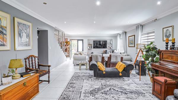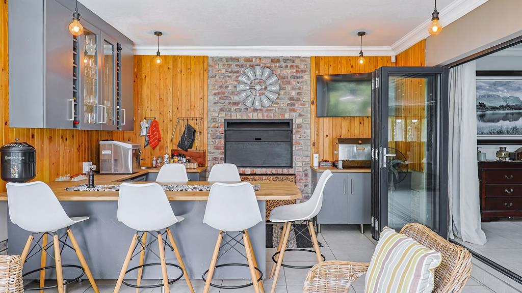 At the heart of the home lies a gourmet kitchen featuring granite countertops, a gas stove, scullery, and laundry, perfectly suited for both everyday living and entertaining. The kitchen flows effortlessly into the dining area and two lounges, while a built-in bar and large entertainment room extend the homes social appeal.
