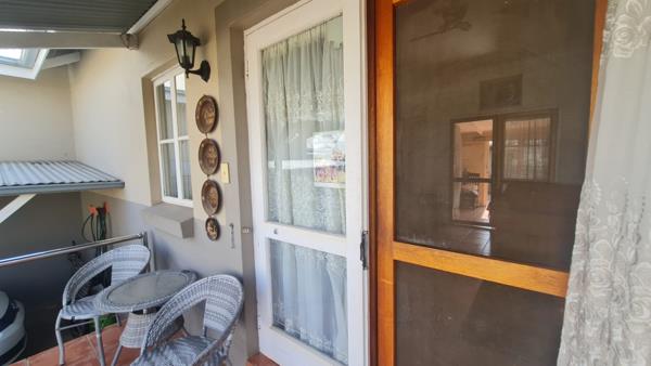 The open-plan living and dining areas flow seamlessly into a well-appointed kitchen with ample cupboard space and a gas stove. An enclosed entertainment area with a built-in braai makes year-round hosting a breeze.