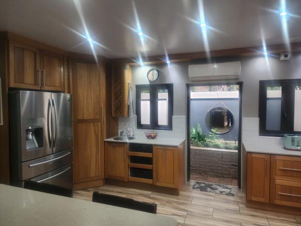 This impressive six-bedroom residence offers the ultimate in luxury living and entertainment. The property features two flood-lit tennis courts and a cricket net, ideal for sports enthusiasts and family fun. A sparkling heated swimming pool with a safety canvas cover ensures year-round enjoyment, while the spacious entertainment area complete with its own fully equipped kitchen makes hosting effortless. The home is fitted with 14 air conditioners, ensuring comfort throughout every season. Security is a top priority, with a comprehensive alarm system, perimeter beams, cameras, and Clear guard protection, making the upper sleeping area a secure safe zone for peace of mind.