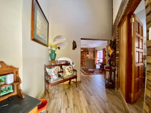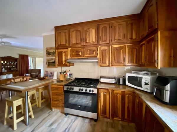An added bonus on this property is two flatlets with their own entrance and covered parking as well as a thatch lapa with built in braai. They are also powered by solar.