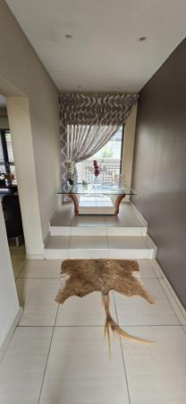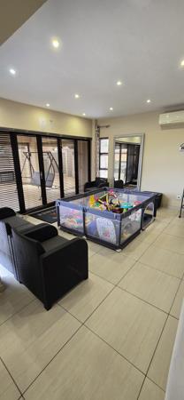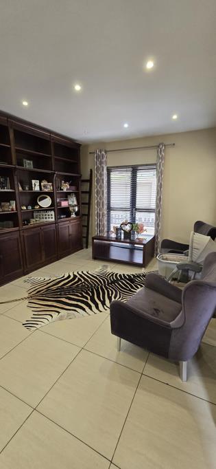 Step outside to an impressive outdoor patio with a built-in braai (barbecue), making it the perfect spot for entertaining. The patio overlooks a spacious garden area, ideal for families or hosting friends. Additional features include a JoJo water tank, double garage, and access to a secure estate equipped with amenities such as a function hall, childrens play area, and tennis courts.