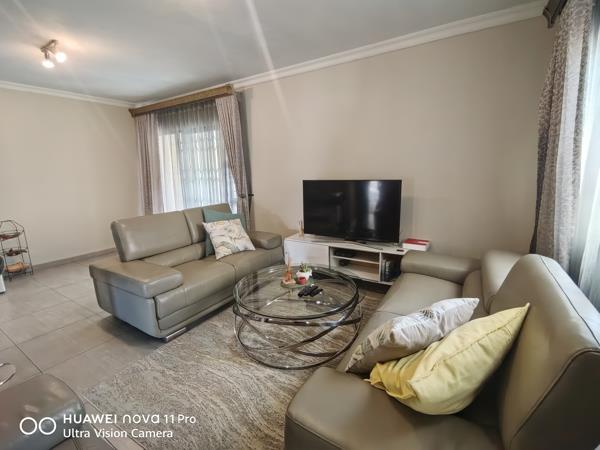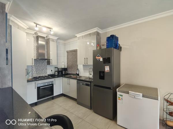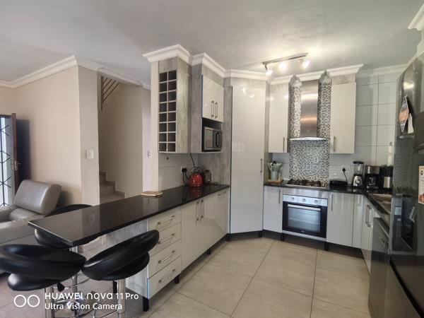 This beautifully designed 3-bedroom, 2-bathroom duplex townhouse offers modern living with exceptional style and comfort. The open-plan layout seamlessly combines the kitchen, dining, and lounge areas, creating a spacious and inviting atmosphere perfect for both relaxing and entertaining. Large sliding doors open from the lounge to the private backyard, where youll find a lovely patio complete with a built-in braai, perfect for outdoor gatherings and enjoying the fresh air.