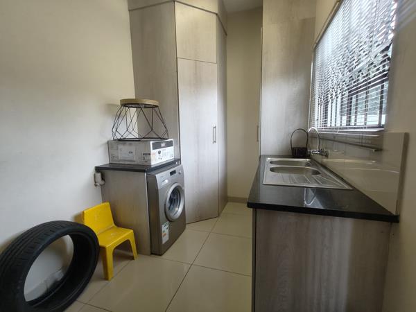 This stunning home features a modern open-plan kitchen with a separate scullery and ample storage space, perfect for effortless meal preparation. The spacious lounge area flows seamlessly, creating an inviting space for relaxation and entertainment. A convenient guest toilet is also located downstairs.