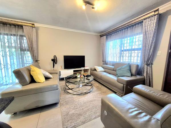 The lounge area opens up onto a spacious patio, complete with a built-in braaiideal for entertaining evenings. An added convenience is the guest loo on the ground floor.