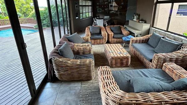Outdoor living is a delight with a stunning braai area and a charming boma area, perfect for entertaining guests. The beautifully landscaped garden, complete with a tranquil water feature and a refreshing pool, provides a serene retreat. A JoJo tank ensures a reliable water supply, adding to the property''s sustainability.