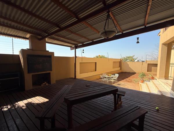 Situated in the rapidly developing area of Cashan, this corner duplex offers convenience at its best just a short walk from shopping centres and local amenities. The unit features a single garage with additional shadenet parking, a low-maintenance small garden, and a beautiful deck thats perfect for entertaining family and friends with a weekend braai.