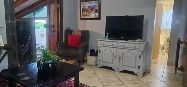 The modern, functional kitchen comes equipped with built-in cupboards, a hob, and easy-to-clean tiled floors. The inviting lounge area flows seamlessly into a cozy covered patiosunroom, ideal for morning coffee, relaxing afternoons, or creating your very own indoor garden nook.
