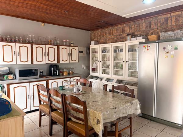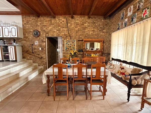 The backyard is perfect for outdoor living, offering a large swimming pool and a boma area, ideal for relaxing or hosting guests. Additional features include domestic accommodation, a double garage, four covered parking bays, and extra open parking space for up to five vehicles. A Wendy house provides extra storage, and a JoJo tank adds further practicality.