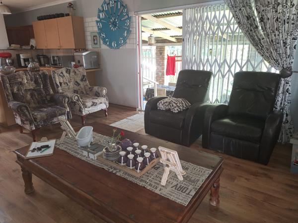 A 3-bedroom house with 3 bathrooms, one bedroom designed as a granny flat with its own kitchen and bathroom, good rental income potential. The property features underroof parking for 4 vehicles, an inverter, with solar geyser, a high-pressure pump, and 3 water tanks (1 x 2400L and 2 x 900L). Additional amenities include perimeter beams, an alarm system, and fibre connectivity. Wendy for storage. Priced to sell! Book your viewing now!