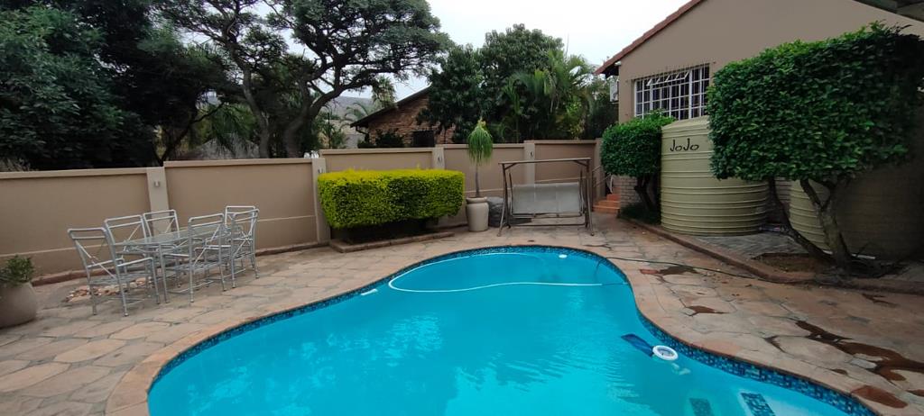 In addition to the main living space, the property also features a flat that is currently used as a gym and playroom, offering versatility for a variety of needs. Outside, youll find a lush, well-maintained garden with a sparkling swimming pool, an irrigation system, and a Jo-Jo tank with a pressure pump, making maintenance a breeze.