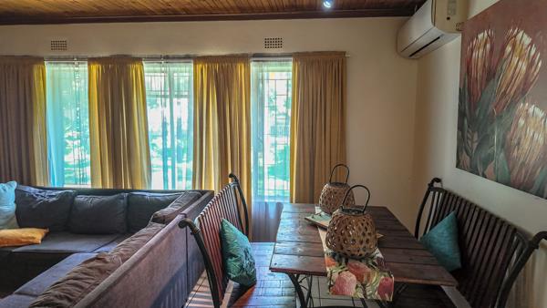 Set on a generous 1500 m² land area, the property features an established garden with an irrigation system, water tanks, and a borehole for sustainable living. Outdoor entertainment is elevated with a large lapa, built-in braai, patio, and a sparkling poolperfect for gatherings with family and friends.