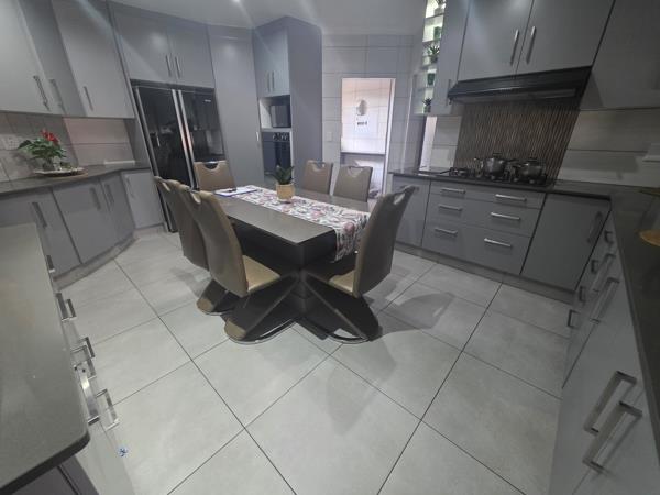 Discover a spacious, versatile family home in Geelhoutpark that blends comfort with smart living. This well-appointed residence offers five bedrooms and three bathrooms, with an additional guest toilet, plus two generous lounges for relaxed daily living. The modern kitchen features a separate scullery, ideal for keeping the cooking area tidy while entertaining guests. An enclosed patio with a built-in braai opens onto the pool, providing a private, great for year-round outdoor living. The property is equipped with two large 5000-liter JoJo water tanks, adding practical value and sustainability.