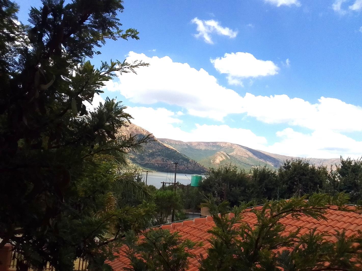Outside, a large swimming pool awaits, offering guests a refreshing dip with stunning views overlooking the dam and mountains. With a sizable 5-thousand-litre Jojo tank and a borehole on site, water supply is reliable and abundant.