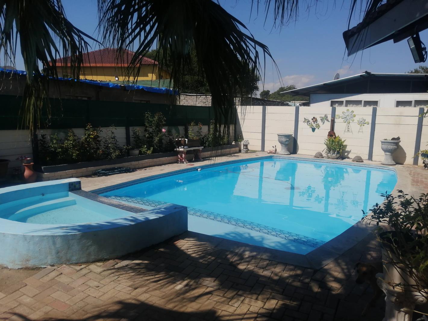 Two sizable spare rooms with Bics of which one is air-conditioned, and all bedrooms have new roof fans. Air conditioners are less than a year old. Large officeentertainment area with build in braai close to pool area.
