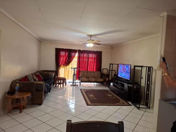 This charming and spacious home offers 3 cozy bedrooms, 2 bathrooms, and multiple living areas, including a lounge and a TV room, perfect for family living. The well-designed kitchen is complemented by ample cupboard space throughout the house, with ceiling fans in every room to ensure comfort year-round. The large backyard offers plenty of parking, alongside double garages and carports in the front. Set on a generous plot, the property also features a functional borehole, helping to significantly reduce water costs.