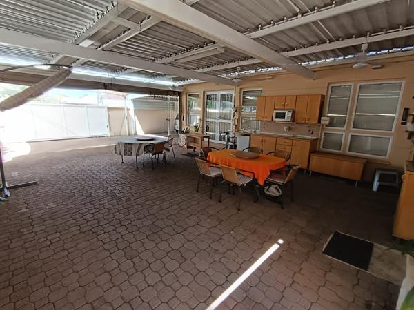 This beautiful house has 3 Bedrooms, 2 Bathrooms, with the main bedroom offering an En-suite Bathroom for added privacy and convenience. This house has a beautiful modern kitchen with a separate scullery. The house also has an enclosed patio, which includes a built-in braai for all seasons. The house is fully equipped with 5 air conditioners to ensure cool temperatures on those hot summer days.