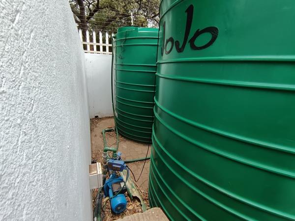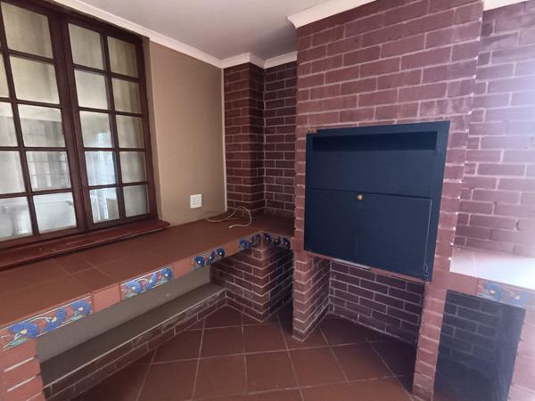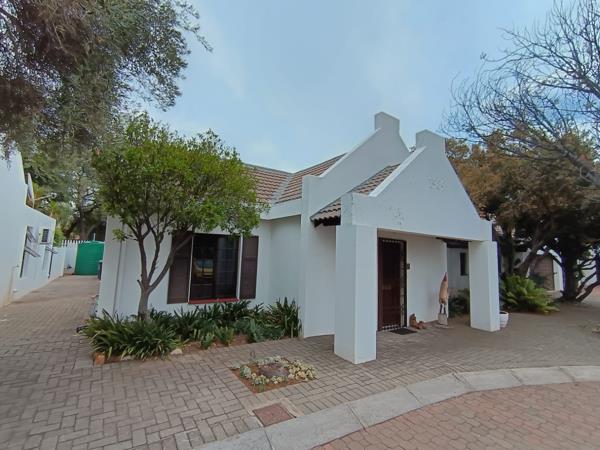 Outside, enjoy year-round entertaining on the patio with a built-in braai. The double garage, outside toilet, and eco-friendly features like solar power, a communal borehole, and two Jo Jo tanks ensure convenience and efficiency.