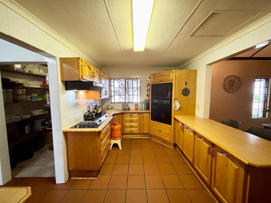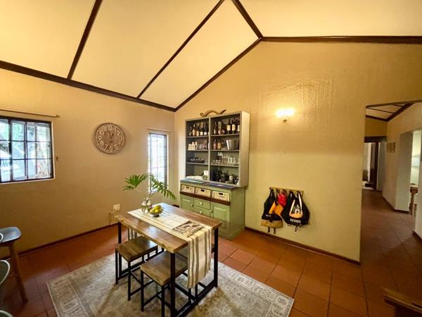 Designed for entertaining, the property boasts a fully enclosed entertainment area with a built-in braai, flowing into a TV room and two additional living spaces. The open-plan kitchen and dining area create a welcoming atmosphere, complete with a large walk-in pantry and separate laundry room.