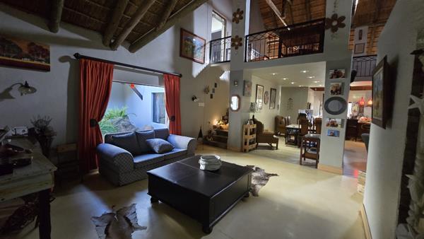 The property boasts a unique, almost safari-like architectural style, blending rustic elegance with contemporary comfort for a truly distinctive living environment.