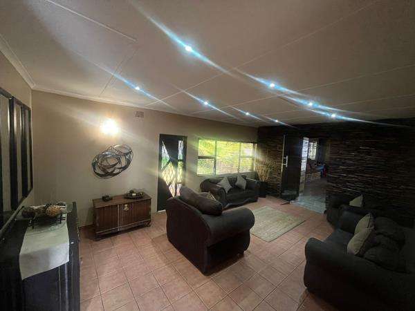 This well-maintained family home in the popular area of Protea Park is set on a large stand, offering generous space and excellent value. The outdoor area is designed for enjoyment and entertaining, featuring a sparkling swimming pool, a boma area ideal for gatherings, and a spacious lapa fitted with a built-in bar and built-in braai, providing ample space to relax and entertain.