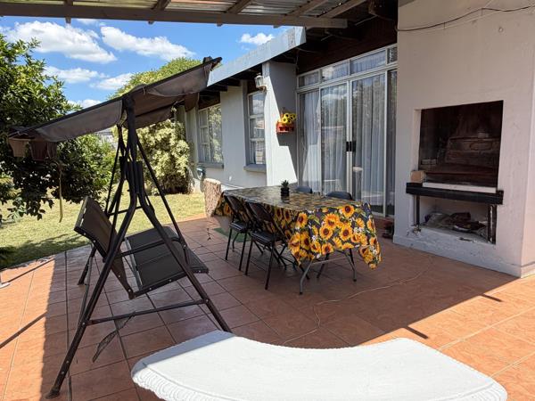 Cozy family home in Protea Park near schools and other amenities. Boasting a stand of 750m2, with three rooms, two bathrooms, study, lounge, dining and separate kitchen with scullery. Also a jacuzzi room or you can use with for what is needed. Double garage, big enough to fit four small cars, double carport. One bedroom wooden cottage with a current rental income. Very neat home, well maintained.