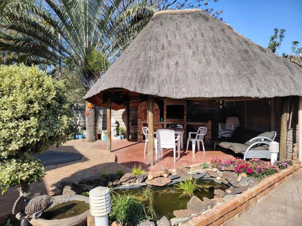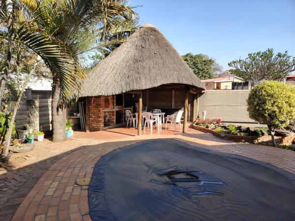 Welcome to your new haven! This charming home invites you to unwind in style with a sparkling swimming pool and a delightful Lapa featuring a built-in braai and pizza ovenperfect for cozy gatherings. The low-maintenance garden offers a serene escape, while the spacious interior welcomes you with an open-plan living area that effortlessly blends the living room, dining room, and a stylish kitchen adorned with sleek black tiles, wooden cupboards, and modern countertops. Enjoy restful nights in the two inviting guest rooms or the serene main bedroom with its luxurious en-suite shower. Outside, a convenient laundry room and a lovely flatlet with its own bedroom, kitchen, and bath add extra charm and versatility. This home is a perfect blend of comfort and elegance, ready to create cherished memories!