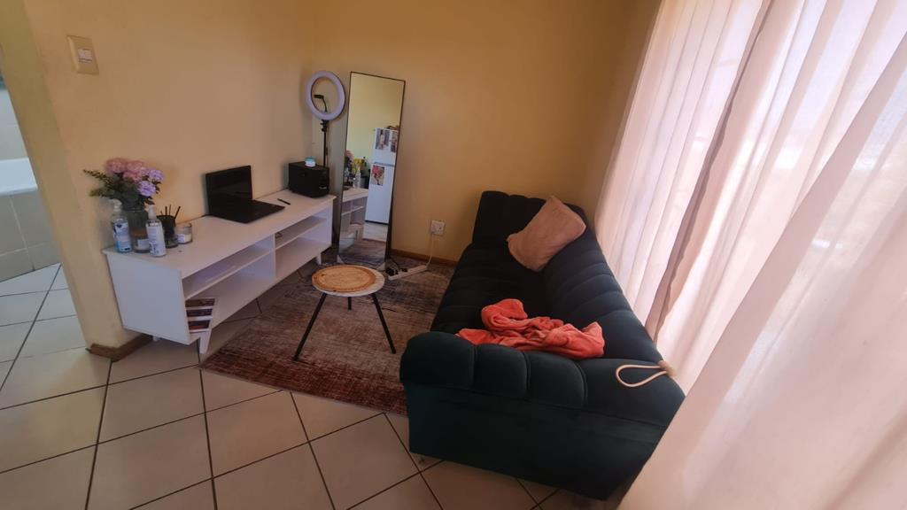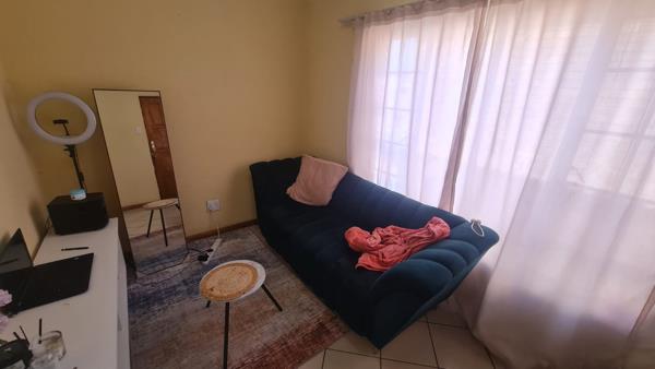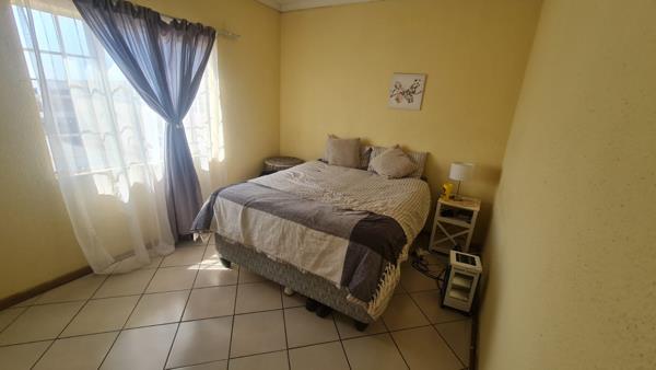 The well-sized bedroom offers comfort and privacy, with ample space for built-in cupboards.