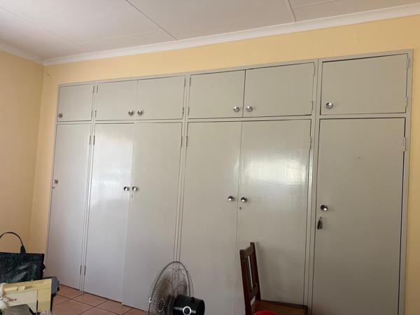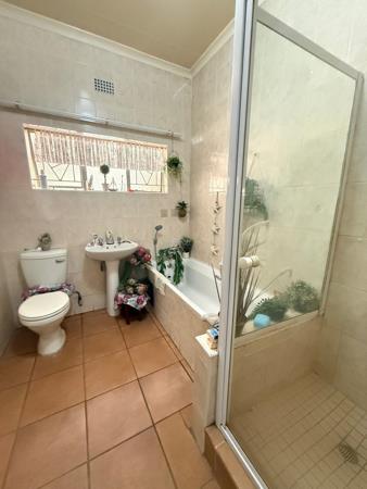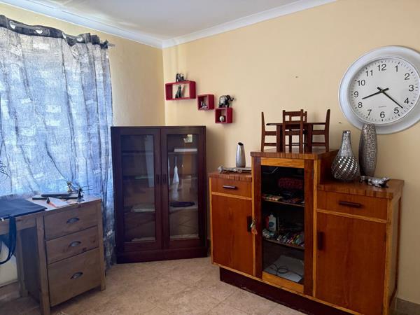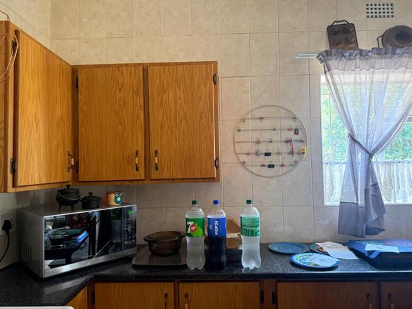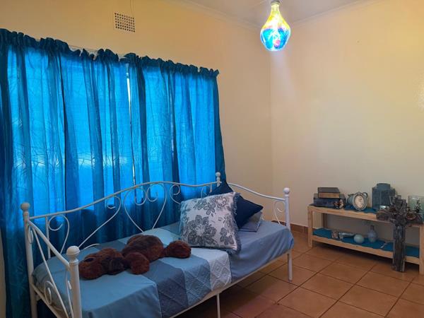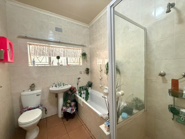 Outside, youll find a large covered stoep, perfect for relaxing or entertaining. The property includes one garage, two covered parking bays, and additional storage space. A separate outside room with a toilet adds extra convenience.