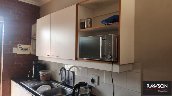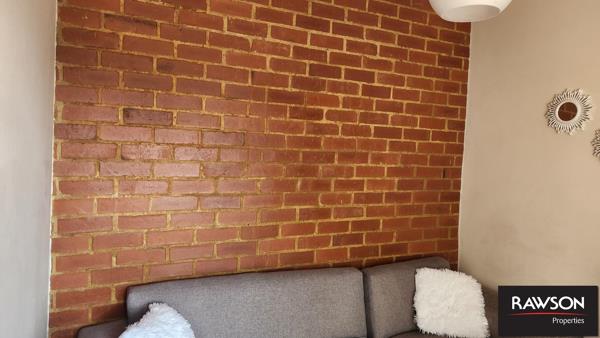 Open plan lounge and kitchen with ample storage.