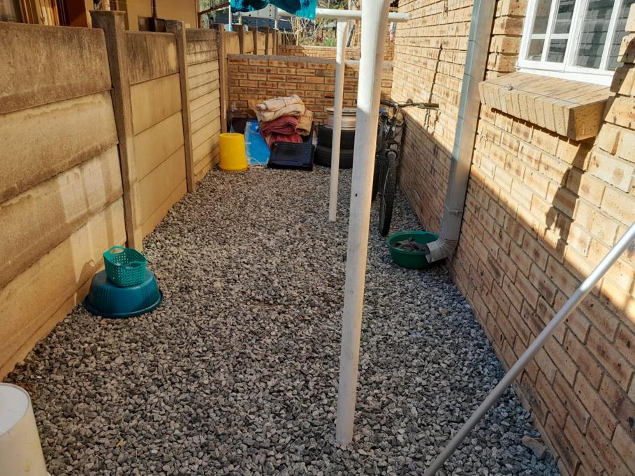 The property includes a single garage and an additional parking space. It is fitted with prepaid water and electricity, offering cost-effective utility management.