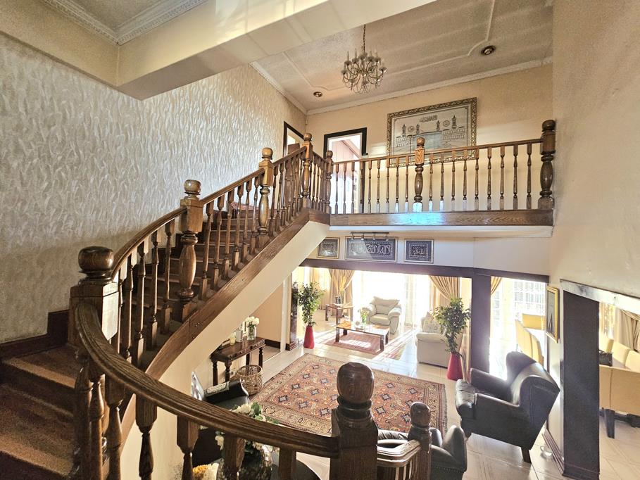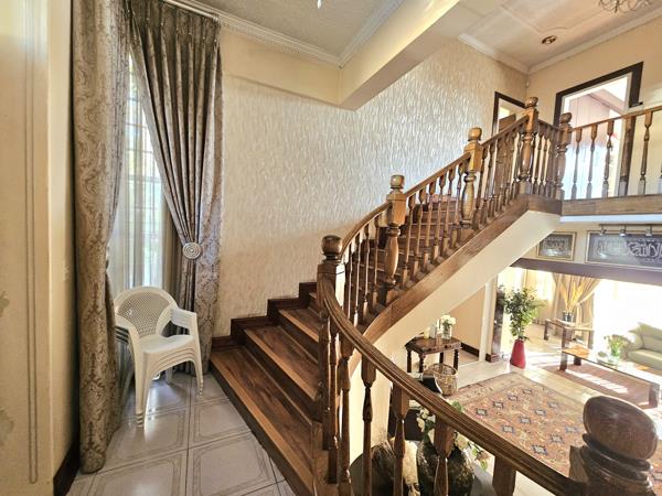 THIS LUXURIOUS DOUBLE STOREY FAMILY HOME CONSIST OF 6 BEDROOMS [2 ENSUITE]X2 BATHROOMS, 2 TV ROOMS [OF WHICH ONE CAN BE ANOTHER BEDROOM], STUDY, DINING ROOM, SPACIOUS LIVING AREA, ENTRANCE LOUNGE, LAUNDRY, STORE ROOM, SERVANTS UARTERS, POOL, DOUBLE GARAGE, DOUBLE COVERED CARPORT, THIS STUNNING HOME IS BUILD ON 2 STANDS TO GIVE YOU THE CONFORT OF A SPACIOUS HOME, LANDSCAPED GARDEN THAT WILL TAKE YOUR BREATH AWAY. BOREHOLE no need to be paying for water, jojo tank, WELL SECURED AND SAFE,