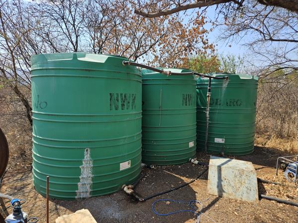 Water supply is 2 equipped Boreholes and four 2,500-liter Jo-Jo tanks ensure ample water storage