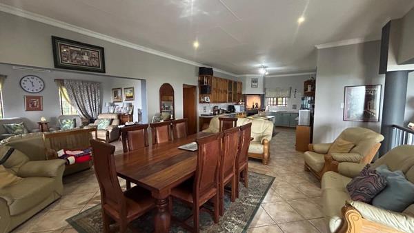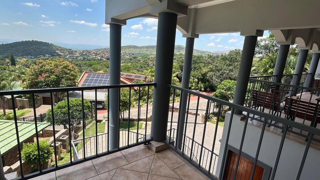 Spacious living areas: TV room, dining room, and lounge all opening to a large balcony with breathtaking views of the Magalies Mountains.