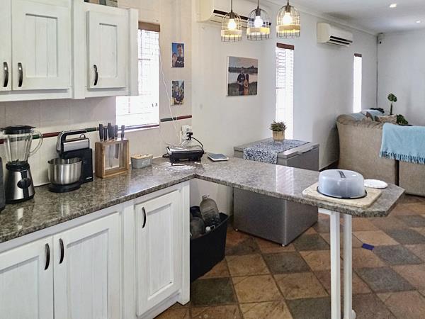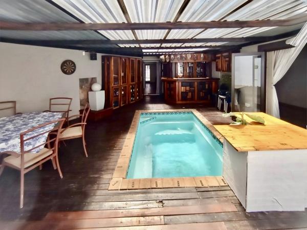The undercover entertainment area boasts a built in braai , built in bar as well as a small pool.